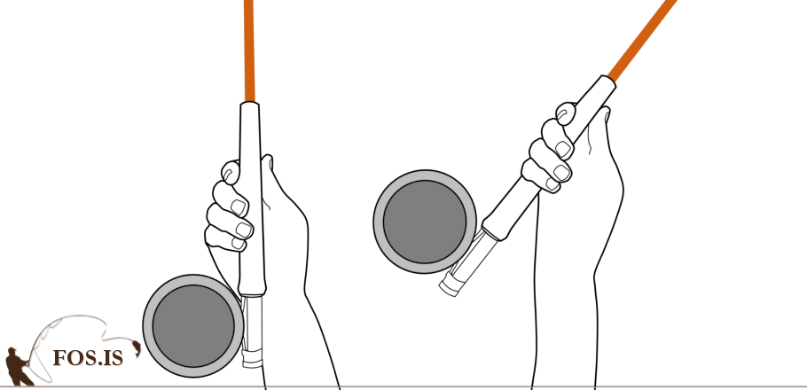 Þannig að maður leiki sér aðeins með líkamsparta, þá hefur það lengi verið minn akkilesarhæll að brjóta úlnliðinn í bakkastinu. Eins og svo oft áður var mér bent á þetta og sagt að stinga stönginni niður í ermina á jakkanum mínum, þó ekki væri nema til þess að finna muninn í kastinu. Jú, jú, ég kannaðist alveg við að kastið batnaði og hélt áfram að tylla stönginni í ermina þannig að ég fengi frið út kastæfinguna. En nei, kemur ekki þessi gaur aftur og spyr mig hvar ég hafi lært að stoppa tvisvar í bakkastinu. Ha, þarna var komið eitthvað alveg nýtt til sögunnar sem ég vissi ekki um, stoppa tvisvar? Já, þú stoppar í bakkastinu en eftir augnablik færir þú stöngina aðeins aftar. Ég fylgdist með sjálfum mér og viti menn. Jafnvel þótt ég hefði spennt stöngina inn í ermina á jakkanum mínum og þannig ráðið bót á þessum með úlnliðinn, þá kom þarna örlítil hreyfing eftir hreint aftara-stopp þar sem ég leyfði stönginni að leka aðeins aftar.