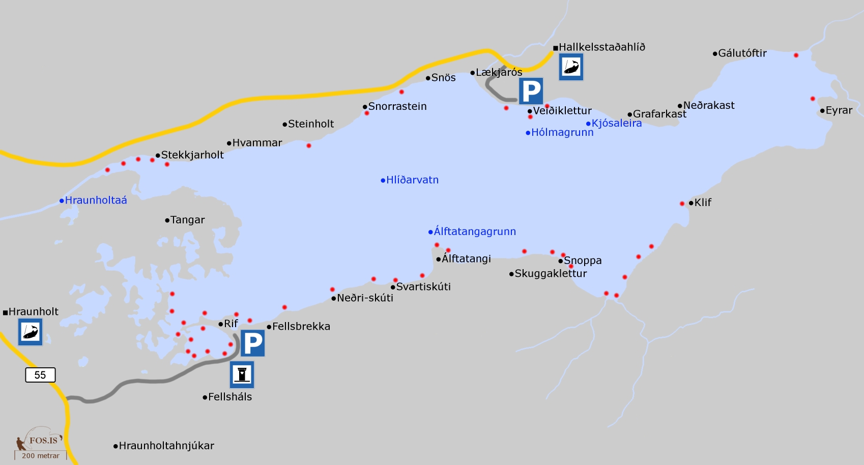 Að eilífðar spurningu unnenda Hlíðarvatns í Hnappadal; Hvernig er vatnsstaðan? Hún er frekar í hærri kantinum miðað við árstíma. Rigningartíð undanfarinna vikna hefur væntanlega fyllt á vatnið, það er hærra í því heldur en þegar ég heimsótti það um páskana. Ég náði t.d. ekki að vaða út í skerin undir Fellsbrekku, eins gjarnan og hefði nú viljað það til að ná betur út í dýpið (kaldara vatn).
