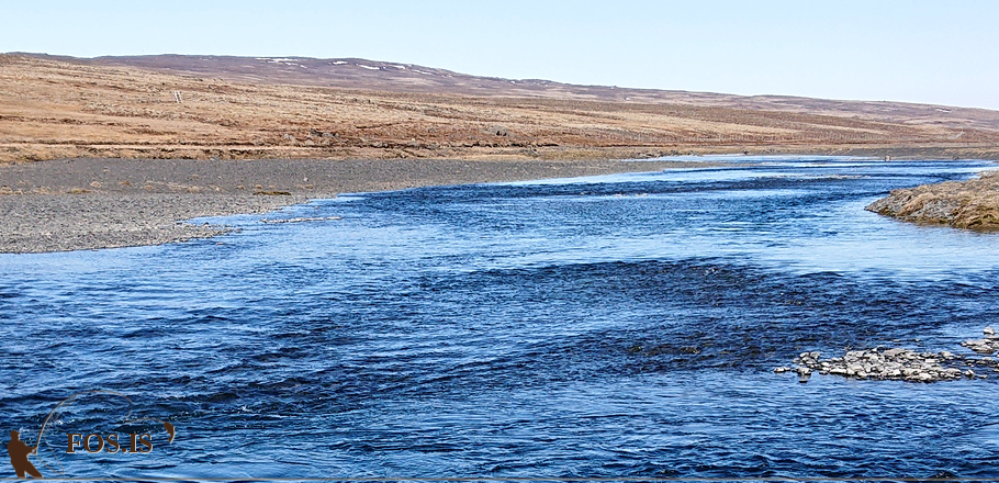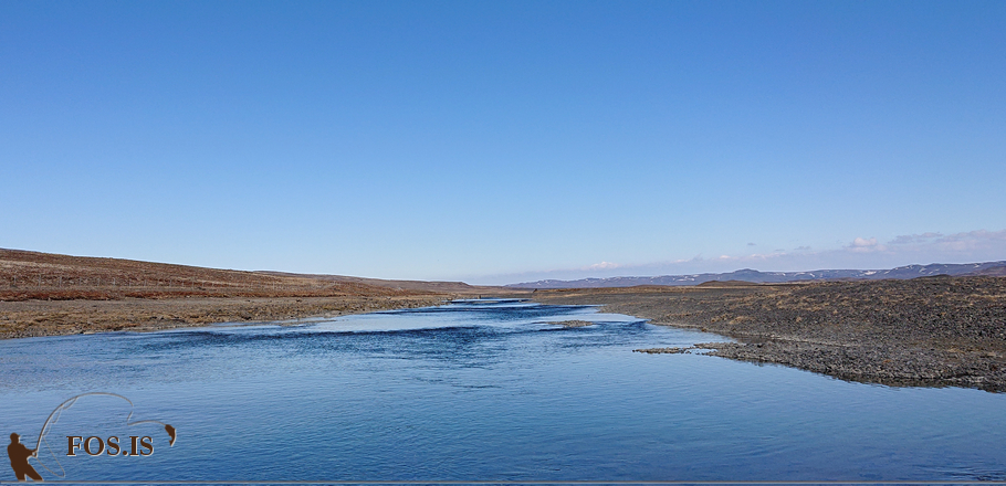 Á rölti mínu eftir bökkum árinnar sá ég fjölda álitlegra veiðistaða og hugsaði nýbráðinni og reynsluleysi mínu þegjandi þörfina. Raunar var lofthitinn ekkert amalegur þegar leið á daginn, held að hann hafi krafsað í 10°C og það var bara mjög ánægjulegt að eyða deginum á þessum slóðum. Góður félagsskapur og hollið var ekki fisklaust, þökk sé lunknum veiðimanni og einni bleikju.