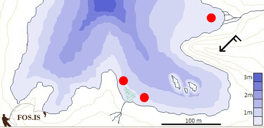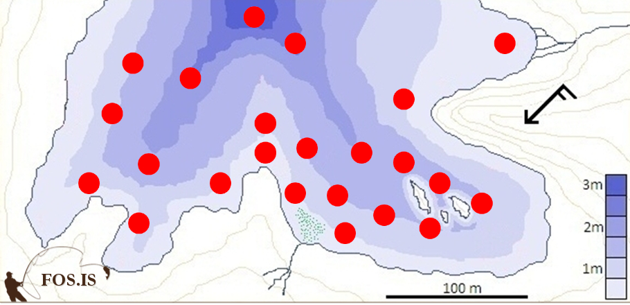 Það kemur auðvitað fyrir að botninn detti úr veiðinni, það bara gerist ekkert og ég verð ekki var við fisk. Það hefur áður skinið í gegn að mér þykir ekkert sjálfsagðara heldur en færa mig reglulega á milli veiðistaða, en undir svona kringumstæðum getur steininn tekið alveg úr. Ég slít sólunum ótæpilega, staldra stutt við á hverjum stað, 3 -5 köst, skipti oft um flugu, veiði djúpt, veiði grunnt, geri ýmsar breytingar en bara litlar í einu. Veiðikortið getur orðið ansi doppótt á svona dögum.