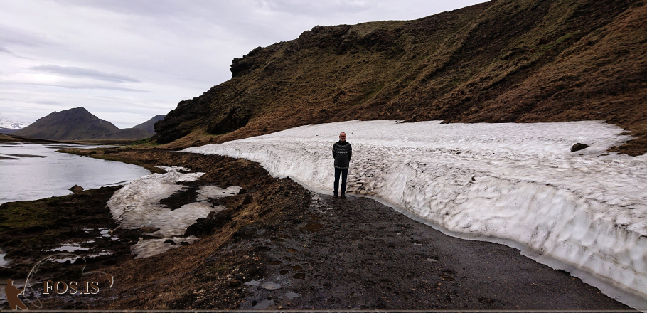 Ég byrjaði laugardaginn á embættiserindum, tók stöðu á búnaði Ármanna sem er á staðnum en sá búnaður verður vonandi vel nýttur í sumar í Fiskirækt að Fjallabaki, m.ö.o. grisjun Löðmundarvatns. Eftir að hafa tekið vörutalningu og framkvæmt ástandsskoðun kíktum við á veginn austan Landmannahellis. Þar hefur einn vetrarskaflinn ekki enn gefið eftir, en vonandi verður þess ekki langt að bíða að hann hverfi og bílfært verður að Löðmundarvatni og þaðan niður á Landmannaleið við Kringlu.