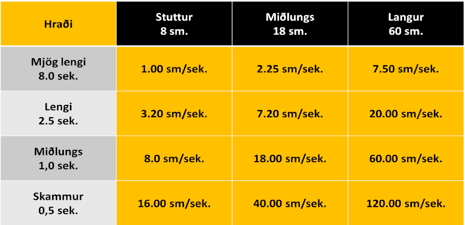 Með því að setja þetta allt saman í eina töflu, þá fáum við út hraða sem er raunverulega mælanlegur, ekki lengur huglægur.