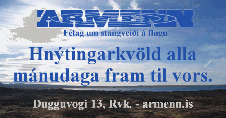 Að venju opnar félagsheimilið kl. 20:00 og auðvitað eru allir velkomnir. Tvö síðustu kvöld hafa ný andlit kíkt inn og það er mál manna að þær flugur sem hrotið hafa af hnýtingarþvingum þeirra beri miklum metnaði vitni og það sé greinilegt að fluguhnýtingar eigi sér bjarta framtíð.