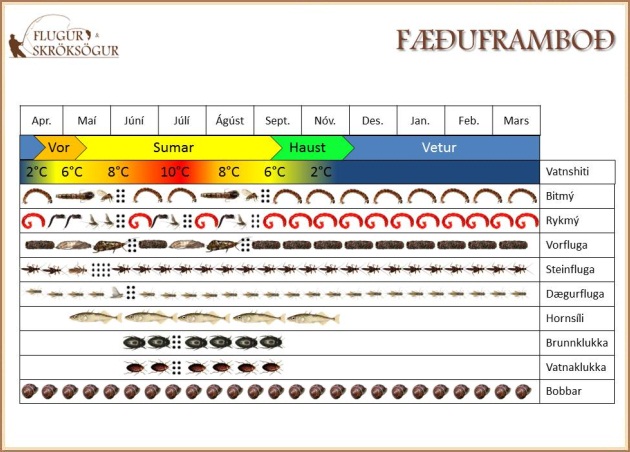Þetta er alls ekki tæmandi listi yfir það sem silungurinn étur árið um kring, en gefur nokkuð góða mynd af framboðinu á hverjum tíma ársins.