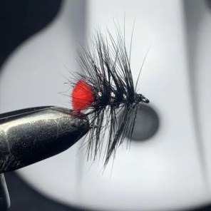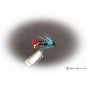 Þetta var svolítið eins og steraskammtur fyrir sjálfstraustið, það óx um nokkur númer og ég fór að velta því fyrir mér hvernig hægt væri að plata fiskinn til að taka flugu sem væri allt öðruvísi en þessar svörtu + blá/grænu/rauðu. Hvernig var þetta fyrir 30+ árum síðan, var ekki verið að næla í fisk á maðk? Svarið fæddist í þvingunni, frekar óásjálega fluga sem ég faldi í lófa mér og lét ekki nokkurn mann sjá. Hnýtt á tvíkrækju #14, svört, brún og koparlituð.