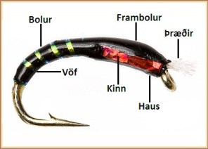 Þyngdar flugur eru væntanlega algengasta leiðin til að ná botninum. Við þekkjum kúluhausa af ýmsum gerðum og blý-þyngdar flugur, sumar hnýttar á mjög þyngda öngla. Eitt er það sem margir láta hjá leiðast að huga að og það er lögun flugunnar. Það eru engin ný vísindi, eins og Pheasant Tail sannar, að grannar, rennilegar flugur sökkva alveg eins vel og þær sem eru bústnar og í yfirþyngd. Þynging PT er í raun sáralítil samanborin við miklar blý- eða tungsten þyngingar stærri flugna.