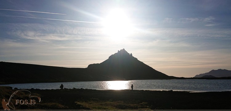Miðað við hitatölur síðustu sólarhringa, þá gerðum við eiginlega ráð fyrir að vatnið hefði hlýnað nóg til að kveikja á einhverju skordýralífi í Hnappadalnum og það stóðst. Það var nóg af flugu; þerrilöpp, toppflugur og ýmislegt annað sem flögraði um eða feyktist til í gjólunni. Við byrjuðum á því að renna inn fyrir Jónsbúð, virtum fyrir okkur ölduhæð og einbeitta veiðimenn sem lögðu agn sitt fyrir fiskinn innan við Rifið. Berandi þá von í brjósti að vind mundi lægja þegar liði á daginn, ákváðum við byrja í vatninu að norðan undir Stekkjarholti þar sem meint útfall vatnsins til Hraunholtaár á að vera.