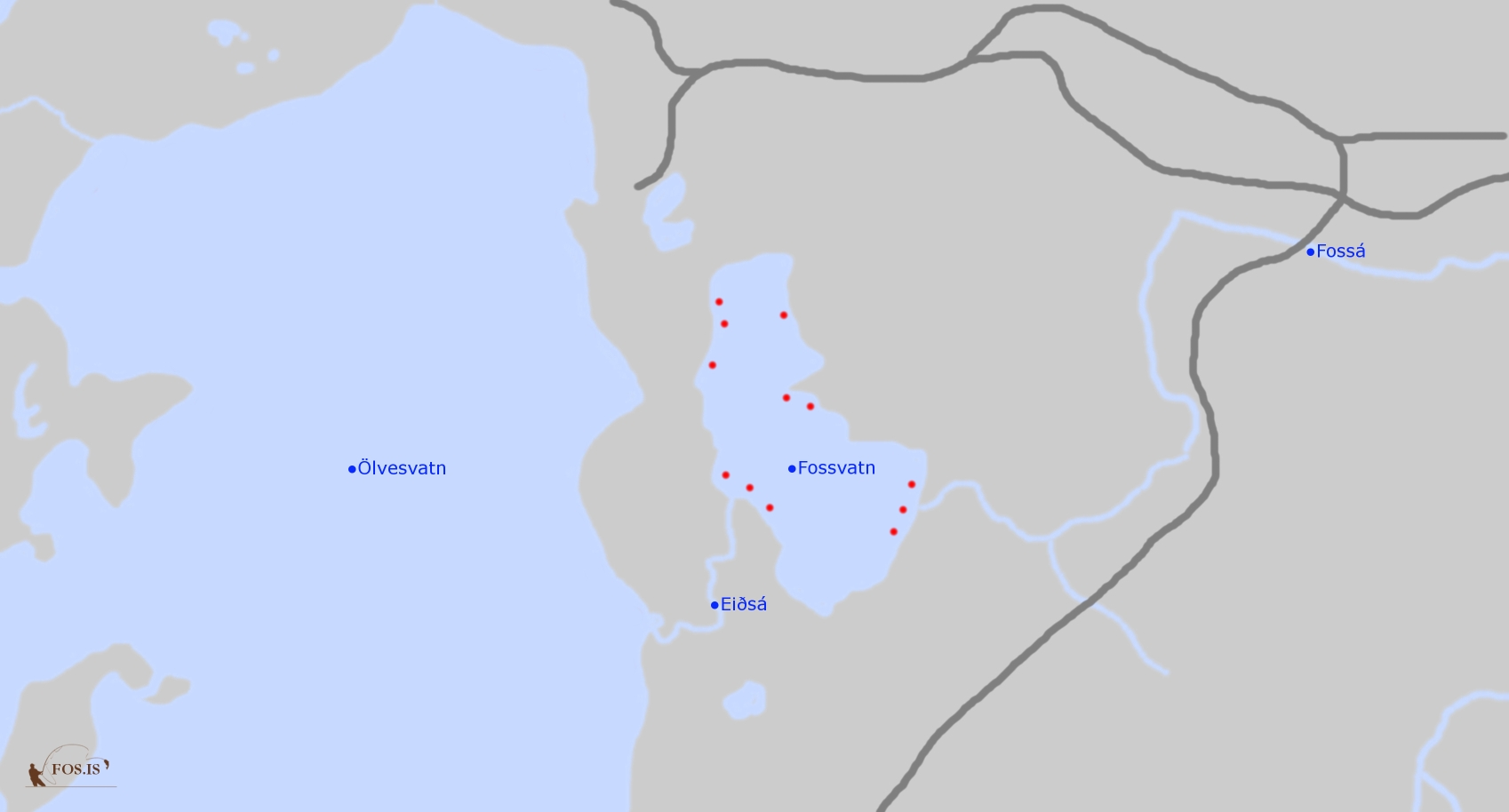 Skammt austan Ölvesvatns á Skaga, sunnan veiðihúsanna, er Fossvatn. Urriði er þar í miklum meirihluta, oft vænni en í Ölvesvatni. Helst er góð veiði við ós Eiðsár og með ströndinni að Fossá sem fellur úr vatninu til austurs. Litlum sögum fer af veiði með austurstöndinni til norðurs en sjálfur hef ég séð til veiðimanna taka þar fisk og eflaust er hægt að veiða allt vatnið eins og flest vötn í raun.