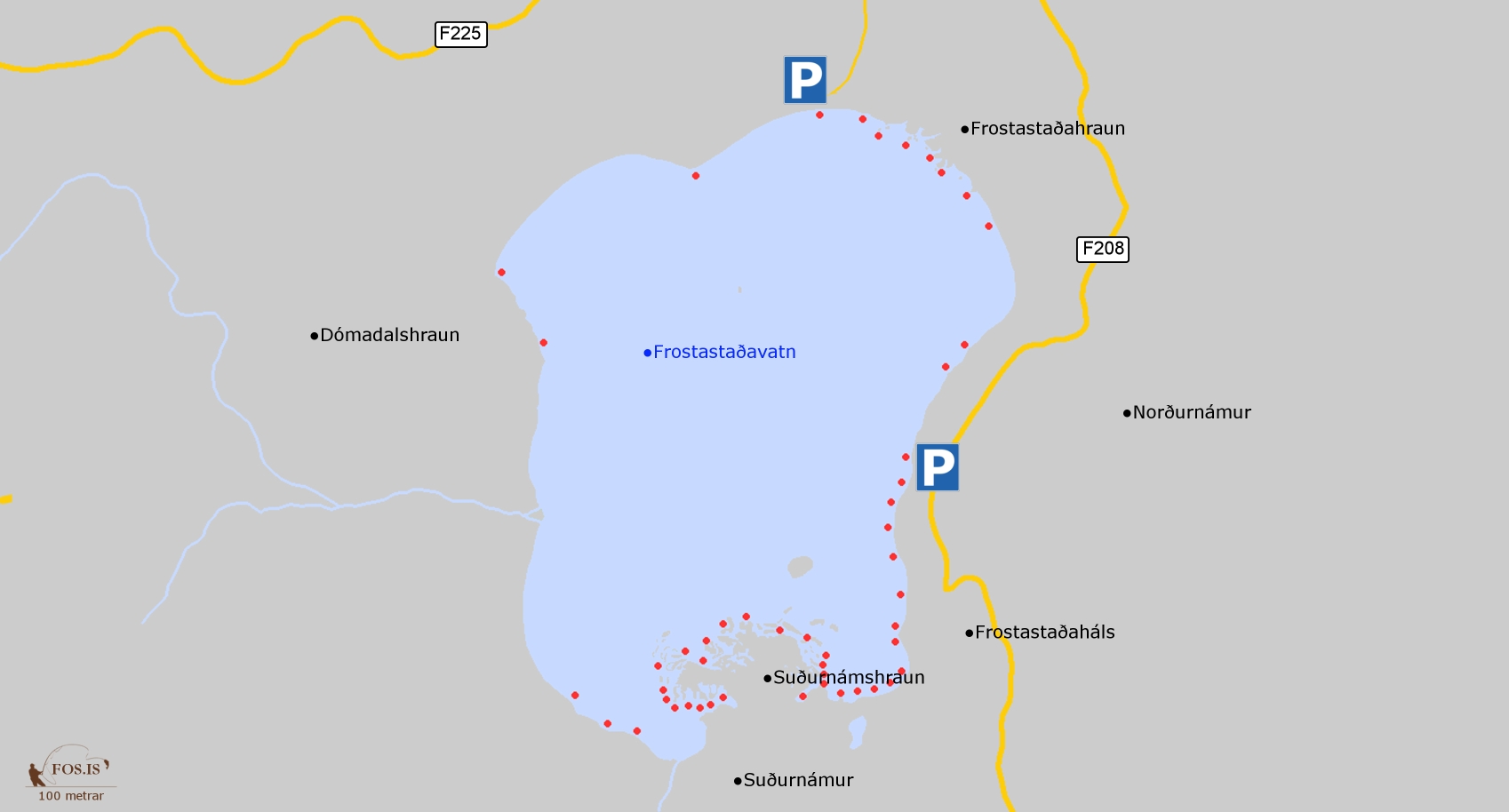 Aðkoma að vatninu er góð, bæði að norðan (F225) og austan (F208) þar sem merkt bílastæði eru fyrir veiðimenn og aðra gesti. Dreifing fiskjar í vatninu er nokkuð jöfn, en vinsælustu veiðistaðirnir eru að norðan við bílastæðið og framundan Frostastaðahrauns þar sem oft má setja í vænar bleikjur.